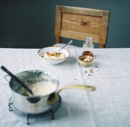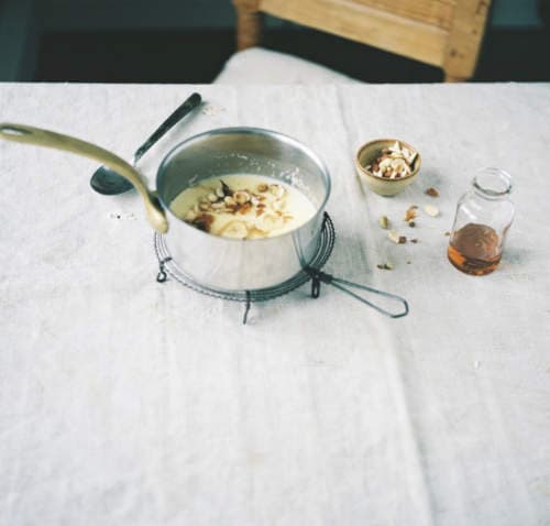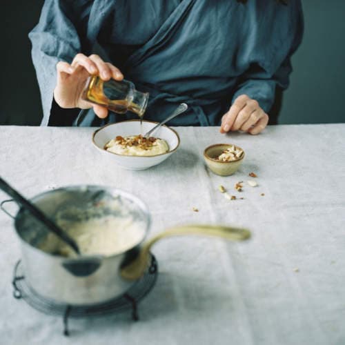 With warm comfort food on a winter morning the day is off to a good start. Creamy, thick polenta soothes, nourishes and feeds your body and is also a fantastic canvas for any topping you could imagine. Ripe, sweet bananas or stewed apple chunks, toasted nuts & seeds for extra oomph, thick runny honey or cold maple syrup – rummage through your fridge and cupboards to find your perfect fruit and crunch combination, you’ll enjoy changing it with the seasons.